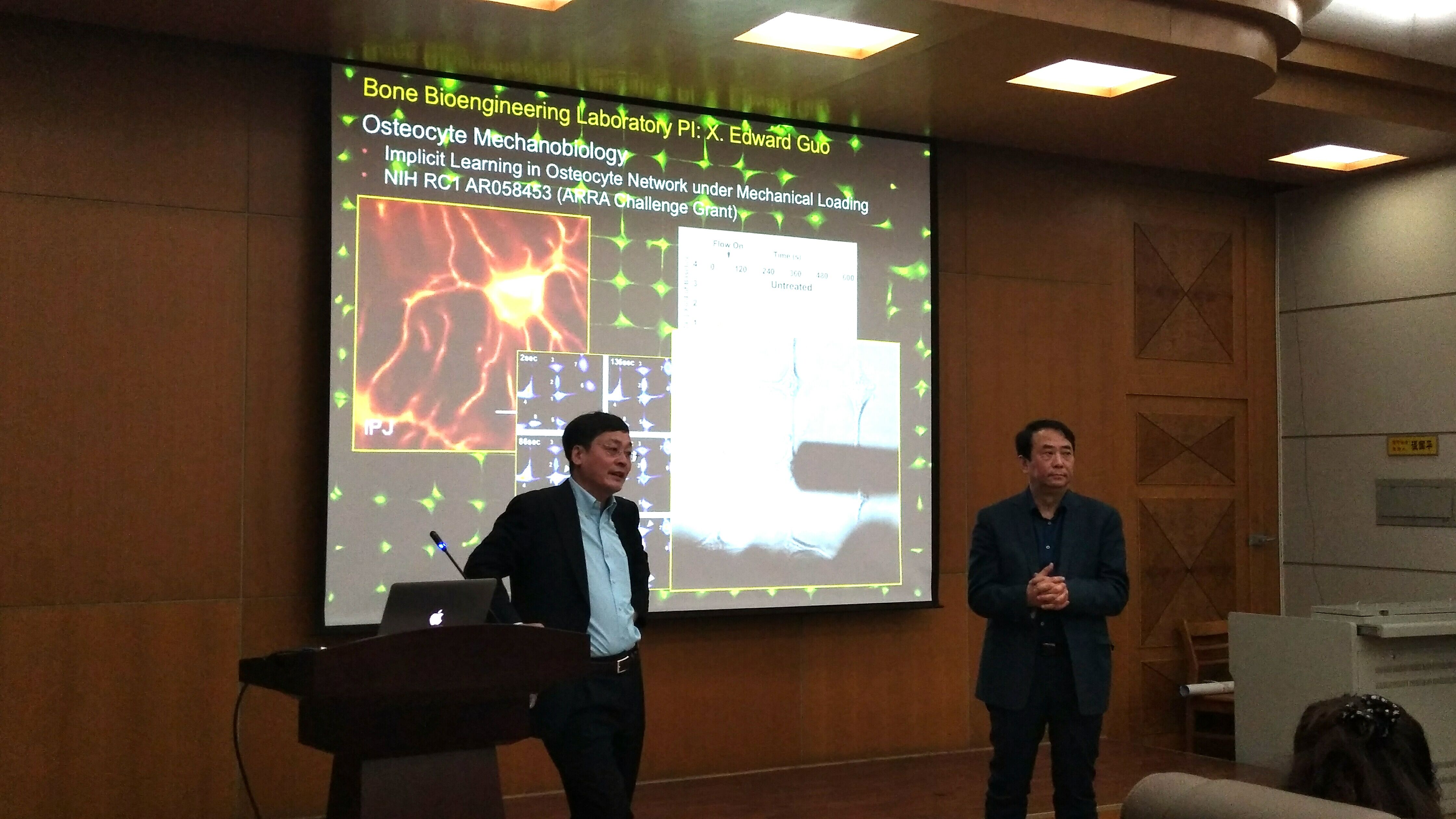 郭向東教授在骨生物力學(xué)、骨對力學(xué)荷載的適應(yīng)及其細(xì)胞/分子機(jī)制、生物組織的計算模型、細(xì)胞生物力學(xué)、骨微結(jié)構(gòu)的影像學(xué)分析、細(xì)胞微觀影像等領(lǐng)域有眾多突出研究成果。曾擔(dān)任美國力學(xué)工程師協(xié)會固體力學(xué)專業(yè)委員會副主席,生物醫(yī)學(xué)生理調(diào)節(jié)協(xié)會主席,國際華人骨研究會主席等職位。榮獲美國國家健康學(xué)會的國家研究貢獻(xiàn)獎、美國國家自然基金事業(yè)獎以及2007年中國海外杰出青年獎。主要學(xué)術(shù)兼職有美國國家生物力學(xué)委員會委員,美國骨外科研究協(xié)會董事會董事、世界生物力學(xué)委員會會員,美國醫(yī)學(xué)及生物工程學(xué)院會士,美國醫(yī)學(xué)及生物工程學(xué)院董事會董事等。此次郭向東教授及其一行與我校生物物理研究所就開展合作達(dá)成了初步意向。