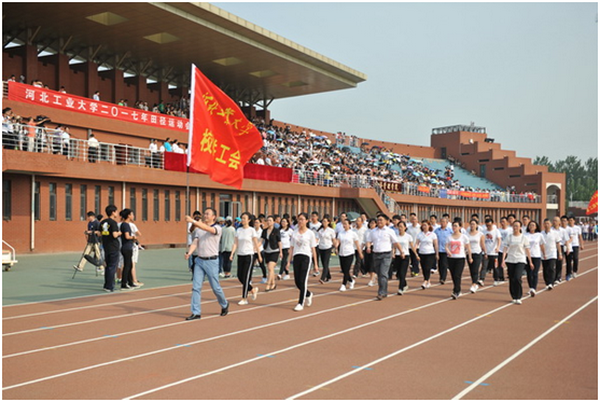 5月19日,河北工業大學2017年田徑運動會在北辰校區體育中心召開。校領導李強、韓旭、李延濤、檀潤華、張建暢、楊玉楨、賀立軍等出席開幕式。副校長劉兵致開幕辭,有關部門負責同志參加了開幕式。