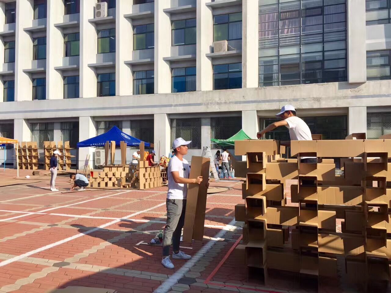 嚴(yán)格初評(píng),入圍決賽的18支隊(duì)伍赴我校參與實(shí)地搭建。經(jīng)過三天的緊張工作,各隊(duì)伍作品完美呈現(xiàn)。